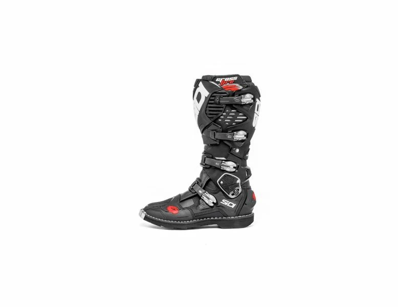 - The Crossfire 3 SRS utilizes four micro adjustable buckle closures, with indented memory-regulation straps. The buckles, straps and retaining clips are easily replaceable. The buckles have just one fixing point (by a screw), which allows them to be easily closed making the boot adaptable to the rider’s position. You will note that all four buckles work independently from each other. This system allows the boot to fit all shapes of feet and lower legs independently making each boot that much more comfortable for each individual rider.